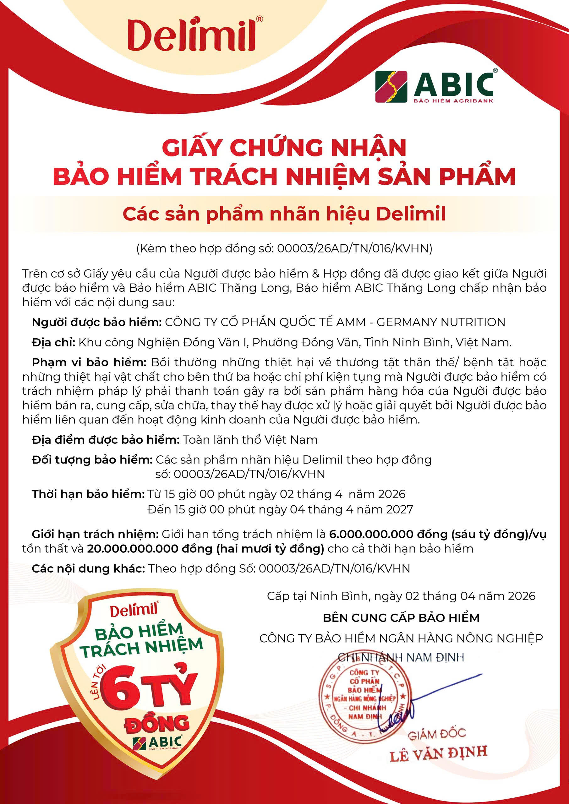 Delimil không chỉ tập trung vào chất lượng dinh dưỡng mà còn cam kết bảo vệ quyền lợi người tiêu dùng một cách toàn diện thông qua bảo hiểm trách nhiệm sản phẩm.